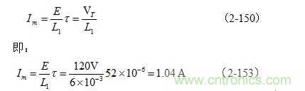 根據(jù)上面分析,以及圖2-55和圖2-56,正常工作時,流過高壓包初級線圈的最大電流Im不應該超過極限電流值Imax的70%,由此,可以求得流過高壓包初級線圈的極限電流Imax為1.49 A 。