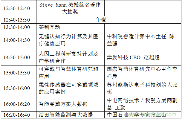 Wearable2017技術(shù)與產(chǎn)業(yè)論壇將從可穿戴和人機(jī)交互技術(shù)的起源,發(fā)展和應(yīng)用,探討前沿技術(shù)和服務(wù)社會(huì)的創(chuàng)新結(jié)合,Steve Mann教授將分享人本智能,可穿戴與物聯(lián)網(wǎng)全新的架構(gòu),其他演講嘉賓和主題包括:加拿大工程院士姜晶分享VR和AR在工業(yè)的應(yīng)用,國家千人專家,安進(jìn)醫(yī)療董事長趙偉分享物聯(lián)網(wǎng)技術(shù)與產(chǎn)業(yè)的創(chuàng)新融合,中國可穿戴領(lǐng)域最早的開拓者陳東義老師談可穿戴與AR在工業(yè)領(lǐng)域的應(yīng)用,中科院普適計(jì)算研究中心主任陳益強(qiáng)分享殘疾人的遠(yuǎn)程交互及可穿戴在醫(yī)療健康領(lǐng)域的應(yīng)用,蘇州能斯達(dá)電子科技創(chuàng)始人張珽介紹創(chuàng)新的柔性壓力傳感器在可穿戴領(lǐng)域的應(yīng)用案例,我愛方案網(wǎng)聯(lián)合創(chuàng)始人王勤分享智能穿戴和人工智能方案大數(shù)據(jù),中國石油大學(xué)專家張衛(wèi)山分享油田檢測與大數(shù)據(jù)。關(guān)于前沿技術(shù)和創(chuàng)新趨勢的領(lǐng)袖對話論壇,嘉賓包括國家體育總局智慧研究中心的李祥晨主任,海爾集團(tuán)科技專家,中科院深圳先進(jìn)技術(shù)研究院醫(yī)工所副所長王磊,中興養(yǎng)老健康CEO蘆東昕和易瞳科技CTO艾韜等。7月28日在深圳的論壇現(xiàn)場將有十多個(gè)創(chuàng)新的可穿戴醫(yī)療健康和VR/AR的產(chǎn)品展示,各方資源將共同成立可穿戴與VR/AR的創(chuàng)新中心。
