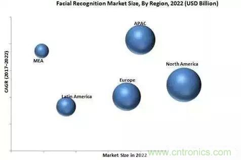 據(jù)Yole數(shù)據(jù)顯示,全球人臉識別市場規(guī)模預計將從2017年的40.5億美元增長至2022年的77.6億美元,這期間的復合年增長率可達13.9%。推動市場增長的主要因素包括:iPhone X帶動更多智能手機集成3D人臉識別,公共場所日益增長的監(jiān)控需求,以及政府部門等各個產(chǎn)業(yè)對人臉識別技術的應用增長。