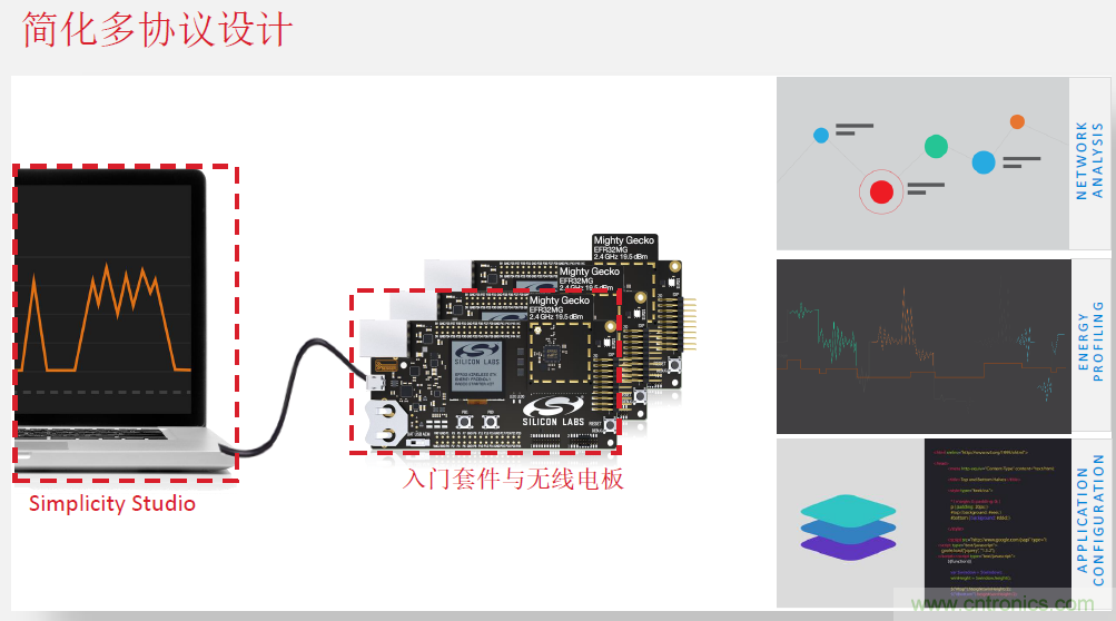 要實(shí)現(xiàn)低功耗的設(shè)計,供應(yīng)商提供的設(shè)計軟件很重要。Silicon Labs動態(tài)多協(xié)議軟件由高度優(yōu)化的無線協(xié)議棧和在Micrium OS上運(yùn)行的高級無線電調(diào)度器提供有力支持。開發(fā)人員可在Simplicity Studio中獲得軟件開發(fā)工具包(SDK),其中也包括基于所選Wireless Gecko開發(fā)套件的可連接照明演示代碼和移動APP參考設(shè)計。