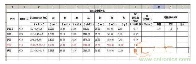 本方案中,磁芯選擇常見的EF25磁芯,為了獲得較低的磁芯溫升,盡量把BAC控制在1000-2000GS之間。