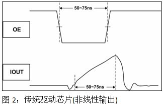 仿真條件:傳統(tǒng)驅(qū)動芯片:Ton:160ns,Tof:70ns