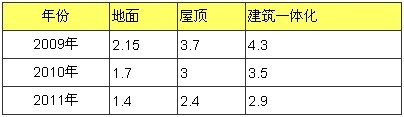 與此同時的各地政府也紛紛出臺政策刺激光伏電站的發(fā)展,杭州市提出“陽光屋頂”計劃,廣州,南昌,無錫,保定,上海紛紛提出了本地的光伏電站發(fā)展規(guī)劃,中國光伏最發(fā)達的江蘇省率先出臺了《太陽能光電建筑應(yīng)用財政補助資金管理暫行辦法》,其中規(guī)定,通過3年努力,力爭在全省建成光伏并網(wǎng)發(fā)電裝機容量400兆瓦,2009-2011年分年度目標(biāo)電價為: