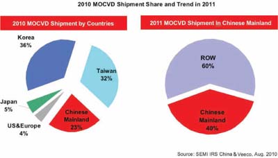 - 2011年中國MOCVD新增量有望達(dá)全球40%