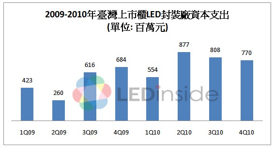2009-2010年臺灣上市柜LED封裝廠資本支出 (單位: 百萬元)