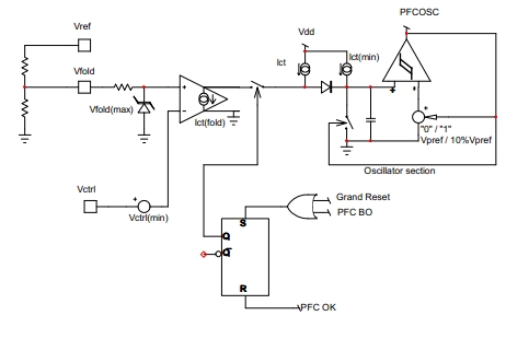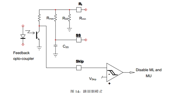 在下列情況時,VLBO可下拉至2V(VLBO(PD)):VLBO高于2V(高線路電壓時),以及VCTRL處于最大值的時間長于4ms(tPFCflag);Vbulk低于額定輸出的95%時。PFCPowerBoost功能在啟動時被禁止;最長下拉持續(xù)時間的典型值為5ms(tLBO(PDlimit));在后續(xù)最少70ms時間(tLBO(PDblank))內,開關保持在開路狀態(tài)。
