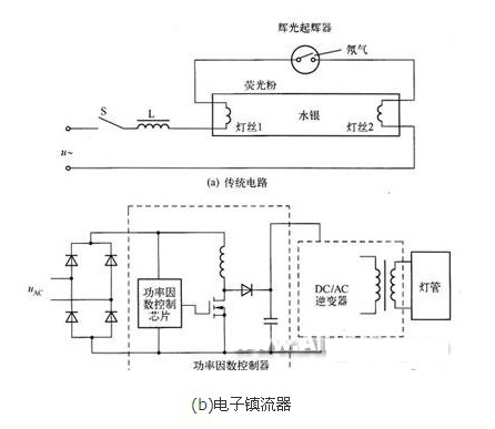 采用內(nèi)置式電源的最大優(yōu)點就是可以直接替換現(xiàn)有熒光燈而不需要對原有的接線做任何改變。那么內(nèi)置式的這種優(yōu)點是不是也付出一定的代價呢?的確如此,而且這個代價還不小。這要從普通熒光燈的鎮(zhèn)流器結(jié)構(gòu)說起:
