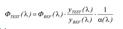 公式(2)中,yTEST (λ)為待測樣品在此系統(tǒng)下的光譜輻射計的讀值、yREF(λ)為參照標(biāo)準(zhǔn)燈在此系統(tǒng)下的光譜輻射計的讀值,α(λ)則為自吸收因子。