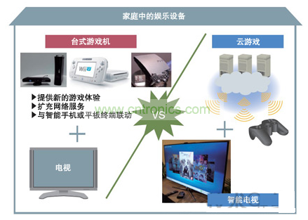 游戲機除了提供新的游戲體驗之外,還打算通過擴充網(wǎng)絡(luò)服務(wù)并進一步與智能手機及平板終端聯(lián)動,來增加用戶使用的機會。而智能電視則支持云計算型游戲發(fā)送服務(wù),開始具有游戲機功能。