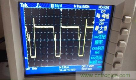6、功率開關(guān)管采用TO-220塑封12N65的場(chǎng)效應(yīng)管ID太大12A。一方面提高了成本,造成浪費(fèi);另外一方面因?yàn)殚_關(guān)管的結(jié)電容太大Ciss為2290PF,會(huì)造成驅(qū)動(dòng)不足的現(xiàn)象反而會(huì)影響驅(qū)動(dòng)轉(zhuǎn)換效率,實(shí)際測(cè)量開關(guān)管最高峰值電壓才524V。因此建議設(shè)計(jì)開關(guān)管用5N60或者7N60的MOS管。