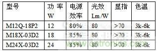 目前埃菲萊公司已經(jīng)生產(chǎn)了從8W一直到160W的各種高效光引擎。其簡要參數(shù)如下表所示。其光效大多數(shù)在100-120lm/W,遠高于無電解電容的“AC光引擎”,而且其熱光效更比“AC光引擎”為高(可參看作者的另一篇“LED光引擎的熱光效”)。