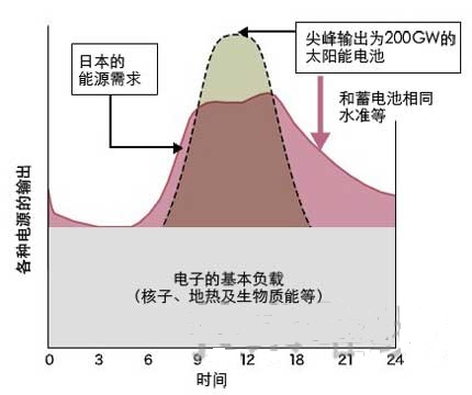 與市電同價(jià)的太陽能很可能加快引進(jìn)在工廠和其他企業(yè)設(shè)施中,使它得以符合或超過日本政府的“2020年以前28GW,2030年以前53GW”的目標(biāo)。日本新能源產(chǎn)業(yè)技術(shù)綜合開發(fā)機(jī)構(gòu)(NEDO)推出的太陽能電池采用預(yù)測(cè)(如出版PV2030)中預(yù)估在2030年前將安裝高達(dá)201.8GW容量。此數(shù)字假設(shè)最大的采用率,每隔一間工廠20%的屋頂面積及所有房屋的1/3都裝有太陽能電池。