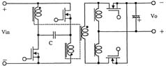 另外,如圖3所示,在采用絕緣變壓器的場合,研究人員還提出了將有源鉗位電路嵌入推挽式轉(zhuǎn)換器中的方案,可在采用48V輸入和1.2V/70A輸出的條件下實現(xiàn)高達91%的效率。上面講到的幾種電路方式基本上都是一段式結(jié)構(gòu),最近,出于進一步提高效率的考慮,人們正在加緊研發(fā)兩段式結(jié)構(gòu)的轉(zhuǎn)換器。就普通的轉(zhuǎn)換器而言,采用兩段式結(jié)構(gòu)將導致效率下降是人所共知的常識,然而,在低電壓大電流轉(zhuǎn)換器中,對輸出進行同步整流是很普遍的做法,因此,如何實現(xiàn)同步整流操作的高效化便成為了關(guān)鍵所在。