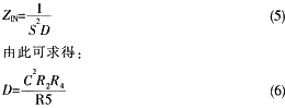 通用阻抗變換器(GIC)的典型電路如圖1所示,其驅(qū)動點阻抗ZIN可以表示為: