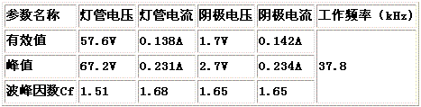 表3能量反饋式電子鎮(zhèn)流器輸出特性