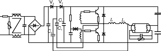 圖1采用無(wú)源濾波的電子鎮(zhèn)流器電路