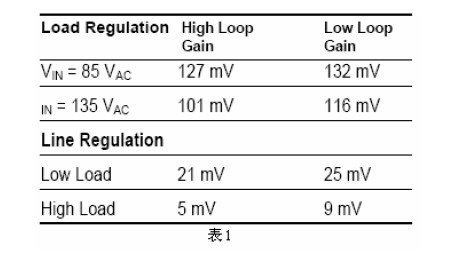 構造一個150W的電流模式正激轉換器,經(jīng)過修正的小信號環(huán)路特性顯示出它在系統(tǒng)瞬態(tài)響應時所起的作用。圖13(原文誤為圖12,譯注)給出它的增益-相位圖。與圖11所展示的一樣,獲得了相同的博得圖曲線。此增益相位圖顯示這個系統(tǒng)有86.7度的相位裕量。意味著穩(wěn)定的系統(tǒng)有快速的瞬態(tài)響應。圖15(原文誤為圖13,譯注)給出系統(tǒng)的瞬態(tài)響應。為了展示相位裕量的作用,通過增加整個系統(tǒng)的增益和提高穿越頻率,系統(tǒng)的相位裕量會減少。穿越頻率提高時系統(tǒng)的相位裕量在減少。圖12(原文誤為圖14,譯注)給出更高的穿越頻率和更少的相位裕量(65度)時的系統(tǒng)博得圖。其瞬態(tài)響應見圖14(原文誤為圖15,譯注),注意更少的相位裕量導致更大的振蕩和更長的調(diào)節(jié)時間。表1比較了這兩個不同增益大小的系統(tǒng)之間線性和負載調(diào)節(jié)率的變化。正如前面所述,高的環(huán)路增益得到更緊密的線性和負載調(diào)節(jié)率。還應該注意需在高的相位裕量和較低的環(huán)路增益之間取得平衡。