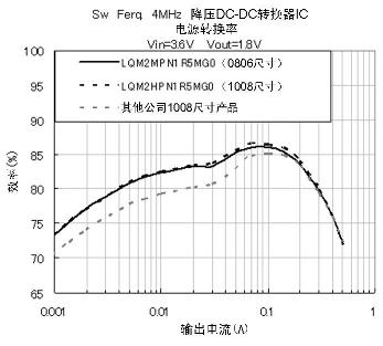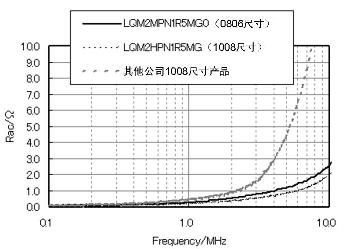 如同圖4中顯示的Rac特性,LQM系列產(chǎn)品能夠充分抑制Rac。同時,圖2的電流-感值偏執(zhí)特性中顯示,它在電流通電時也能確保高感值,擁有良好的電力變換效率特性。這些性能能夠?qū)崿F(xiàn)手機在待機狀態(tài)下的高電力變換效率,對延長電池壽命做出貢獻。