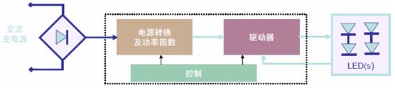 在“功率因數(shù)校正(PFC)+恒壓(CV)+恒流(CC)”的三段式架構(gòu)下,交流-直流(AC-DC)轉(zhuǎn)換與LED驅(qū)動電路并未集成在一起,而是采用分布式配置,既簡化安全考慮又增強(qiáng)系統(tǒng)靈活性,也稱作分布式方案,典型應(yīng)用包括線性燈及線槽燈等。
