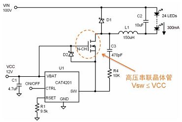 圖4 CAT4201高壓LED驅(qū)動器配置