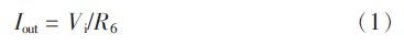 電流控制電路采用數(shù)模轉(zhuǎn)換器芯片TLV5613加上V/I轉(zhuǎn)換電路構(gòu)成穩(wěn)定電流源,可通過單片機程序控制輸出所需要的電流給測量回路供電以滿足系統(tǒng)測試對電流的要求。在極性測試環(huán)節(jié)可給出合適的電流值,便于系統(tǒng)測量二極管電壓值并據(jù)此判斷二極管的好壞及極性;在特性測試環(huán)節(jié)可根據(jù)設(shè)定電流值增大或減小回路電流,使其與設(shè)定值一致;在伏安特性曲線繪制環(huán)節(jié)可給出由小到大逐漸增大的電流值便于系統(tǒng)采樣繪圖。