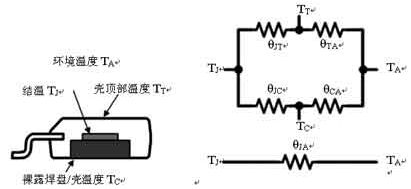 通過二極管的壓降和通過的電流,可以計算功耗;通過二極管的壓降可以查到結(jié)溫,根據(jù)功耗、結(jié)溫和器件裸露銅皮或與芯片內(nèi)部襯底相連的管腳的溫度,可以計算得到RθJC或RθJL。根據(jù)功耗、結(jié)溫和環(huán)境溫度,還可以計算得到RθJA。
