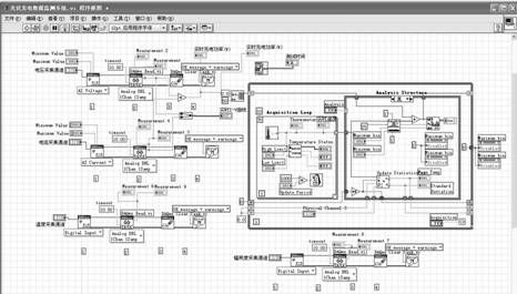 圖5是光伏發(fā)電數(shù)據(jù)監(jiān)測系統(tǒng)前面板對應的部分程序框圖,主要包括電壓采集、電流采集、輻照度采集、溫度采集及其處理程序。