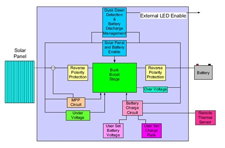 在白天時(shí)間系統(tǒng)對(duì)電池充電,而在夜間電池放電照亮定義的空間。雖然輸入能量不能保證,但輸出能量可在相當(dāng)長(zhǎng)的時(shí)間保持不變。如果一個(gè)系統(tǒng)的大小不合適,電池可能因放電而損壞。要防止電池?fù)p壞,必須用 LED 電路抑制操作,防止電池耗盡。