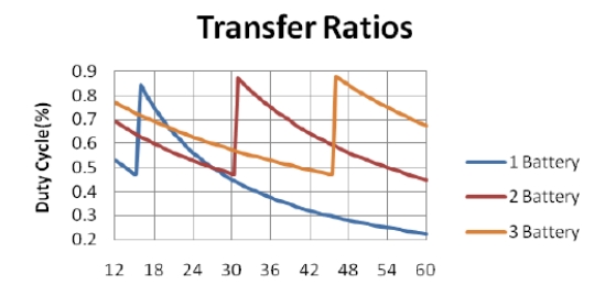 圖 4:多個(gè)電池降壓和升壓模式之間的傳遞比