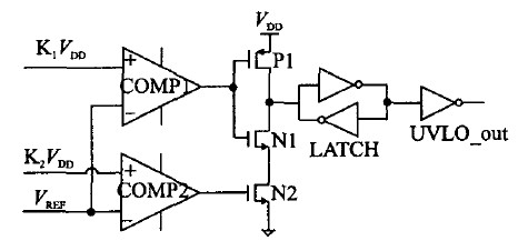 圖2 兩個(gè)比較器實(shí)現(xiàn)的欠壓鎖定電路