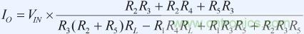 在公式1中,負(fù)載電阻影響輸出電流,但如果我們?cè)O(shè)置R1 = R3和R2 + R5 = R4, 則方程簡(jiǎn)化為: