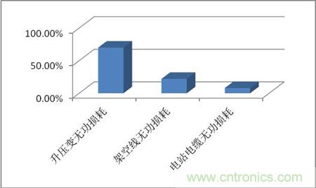 一般的,升壓變無功損耗所占總無功損耗的比例接近70% ,送出線路中的架空線產(chǎn)生的無功損耗占總無功損耗22%以上,光伏電站全部電纜線路產(chǎn)生的無功損耗所占比例約為8%;另外,電站的感性無功需求遠(yuǎn)小于容性無功需求。