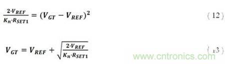必須注意的是,這里可以很大程度上忽略通道寬度調(diào)制的影響。這是因?yàn)槿魏我蚵O電壓上升導(dǎo)致的漏極電流的上升會(huì)在通過RSET電阻后下降,并導(dǎo)致源電壓的上升。為了使MOSFET能維持任何電流,柵極電壓必須大于源電壓與閾值電壓的和。也就是說,給定一個(gè)柵極電壓,源電壓將被限制在至少比柵極電壓小一個(gè)閾值電壓的值,且再大的漏極電壓上升也不會(huì)提升漏極電流。因此,構(gòu)建相應(yīng)運(yùn)行條件,RSET必須足夠大,從而確保在上述限制下可允許作出以下假設(shè):
