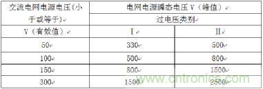 1、根據(jù)交流電網(wǎng)電壓有效值和過電壓類別確認(rèn)交流電網(wǎng)電源瞬態(tài)電壓(由附錄Z和表2J確定);