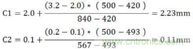 即最小電氣間隙的基本絕緣為C1+C2=2.34mm(由于峰值電壓500V大于輸入電壓峰值),加強(qiáng)絕緣為4.68mm;
