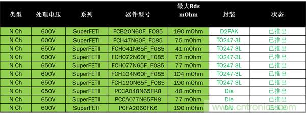 表3:安森美半導體的SJ MOSFET和裸片陣容