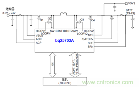 由于C型USB端口是通用的,且具有很高的功率傳輸能力,是適合此類應用的理想選擇。為了兼容具有不同電壓和功率電平的電源,諸如無人機這樣的多元電池組系統很有必要使用降壓升壓充電器。在飛行間隔期間,用戶能夠快速而安全地對電池進行充電也是至關重要的。bq25703A和bq25700A支持高達6.35A的充電電流,并具有廣泛的保護功能,包括有助于從各種適配器獲得最大功率的輸入電流優(yōu)化(ICO)。圖1提供了bq25703A應用圖中的附加信息。