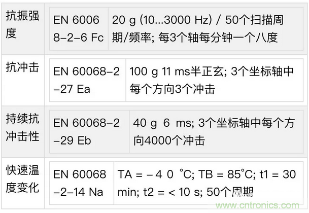 標準文件冗長,因為有標準可查看,就不一一具體說明了。這里除了可以去看看EN60068這個標準文件,選型的時候對您也是有幫助的,特別是如果您的產(chǎn)品應用有震動例如振動臺、抗沖擊例如機車床設備等等,或者環(huán)境使用溫度有高低溫要求的時候,這時這些標準的符合性就是您選型首要依據(jù)了。