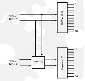 40-789射頻開關(guān)模塊可以配置成兩個18路的多路復(fù)用器(兩個獨(dú)立的輸出)或一個單獨(dú)的36路多路復(fù)用器。