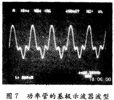 圖5,圖6,圖7分別是在aa′,bb′以及在功率管的基極測(cè)得的波形。由圖7可以看出在基極觀察的波形含有很多諧波分量,很難準(zhǔn)確得出基波的幅度和相位。即使使用頻譜分析儀,只能分析出基波的幅度,但是準(zhǔn)確得到相位很困難。由圖6可以看出這里的波形諧波的分量很小,基本上可以看作是基波了,這一級(jí)L型網(wǎng)絡(luò)的確起到了阻抗匹配和濾除諧波(實(shí)際上是隔離)的作用。