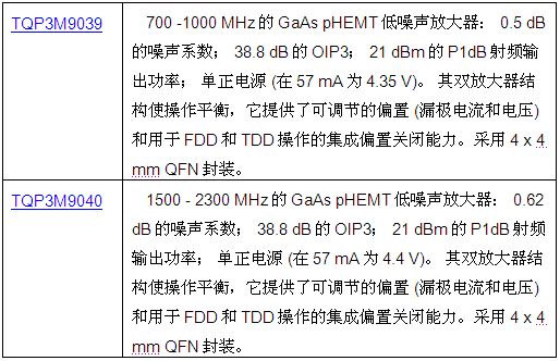 TriQuint推出兩款最新雙匹配低噪聲放大器