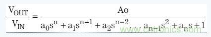 巴特沃茲濾波器傳輸函數(shù)包括所有極點(diǎn),并且沒(méi)有零,其表達(dá)式如下: