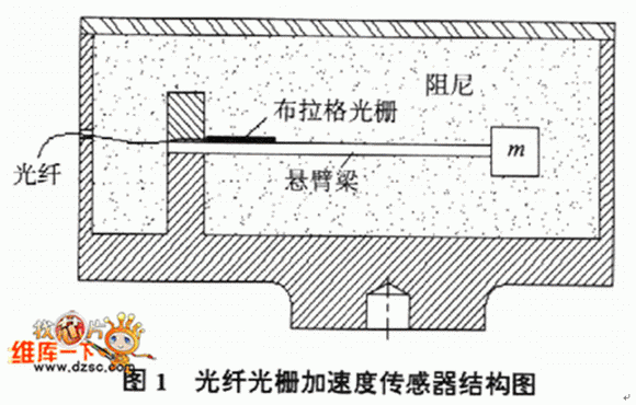 公式(1)為光纖光柵傳感器的應(yīng)變傳感機(jī)理光纖光柵加速度傳感器的設(shè)計(jì)是利用此機(jī)理來(lái)間接測(cè)量加速度物理量在傳感器的結(jié)構(gòu)設(shè)計(jì)上利用懸臂梁的受力把加速度量轉(zhuǎn)換為應(yīng)變量,從而轉(zhuǎn)化為布拉格波長(zhǎng)的變化,通過(guò)檢測(cè)波長(zhǎng)的變化即可實(shí)現(xiàn)加速度的測(cè)量.