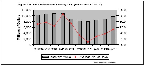 第二季度報(bào)告期的上半段,大約35家半導(dǎo)體元件供應(yīng)商的總體庫(kù)存增至96億美元,比第一季度的89億美元?jiǎng)派?%,快于3.2%的季節(jié)性平均水平。