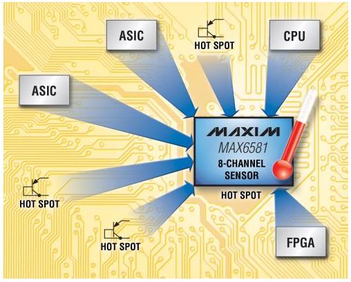 Maxim推出精度為±1°C的8通道溫度傳感器MAX6581。器件具有7路遠(yuǎn)端檢測通道,可監(jiān)測帶有多個(gè)熱源的ASIC、FPGA、CPU和電路板。每路遠(yuǎn)端檢測通道均具有串聯(lián)電阻抵消和β補(bǔ)償功能,可實(shí)現(xiàn)最高精度。MAX6581包含了8路溫度檢測通道,但這8路通道卻僅需單個(gè)I²C地址,因而有效降低了電路板面積和系統(tǒng)整體成本。