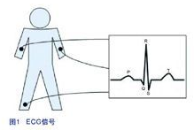從電極收集回來的信號處于 在400μV到最高5mV的范圍內(nèi),并在0.05Hz 和100Hz 下帶有3dB轉(zhuǎn)角頻率。這類信號一般都會受到不少的干擾,例如電極的接觸噪聲、電源線路噪聲(50MHz)、呼吸、肌肉活動、以及來自其他電子器件的干擾。