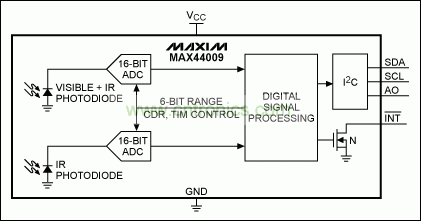 圖4. MAX44009功能框圖