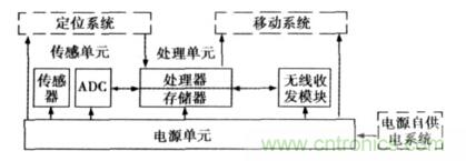 節(jié)點(diǎn)是無(wú)線傳感器網(wǎng)絡(luò)的基本功能單元,具體應(yīng)用不同,節(jié)點(diǎn)的設(shè)計(jì)也不盡相同。傳感器節(jié)點(diǎn)的基本組成模塊有:傳感單元、處理單元、通信單元以及電源部分,節(jié)點(diǎn)的結(jié)構(gòu)見圖2。此外,根據(jù)具體應(yīng)用要求可以添加功能單元,如:定位系統(tǒng)、移動(dòng)系統(tǒng)以及電源自供電系統(tǒng)等。