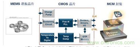 MEMS硅晶振由于采用全自動(dòng)化的半導(dǎo)體工藝,內(nèi)部?jī)蓚€(gè)晶片(一個(gè)是MEMS諧振晶片、一個(gè)是具有溫補(bǔ)功能的鎖相環(huán)CMOS電路)采用MCM封裝在一起。