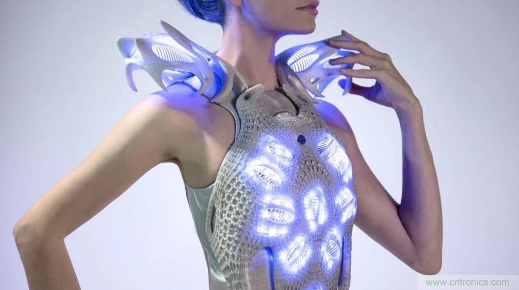 我們還可以通過肢體方面的一些表達(dá)來進(jìn)行溝通,很顯然,要想充分利用人類的肢體語言,智能服飾是一個(gè)非常不錯(cuò)的選擇。來自荷蘭的設(shè)計(jì)師Anouk Wipprecht就設(shè)計(jì)了一系列能夠通過生物特征識(shí)別技術(shù)來表達(dá)自身情緒的智能服裝。未來,我們可能會(huì)穿上一些帶有LED燈的類似盔甲之類的服裝,即使不說話也能表達(dá)自己的想法,不過我想應(yīng)該會(huì)有人不喜歡這么奇怪的衣服。